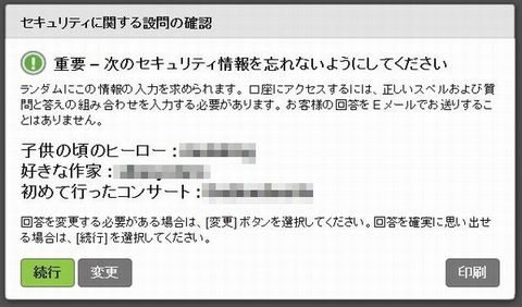 セキュリティの質問に対する答えは「アルファベット(半角英数)」で。